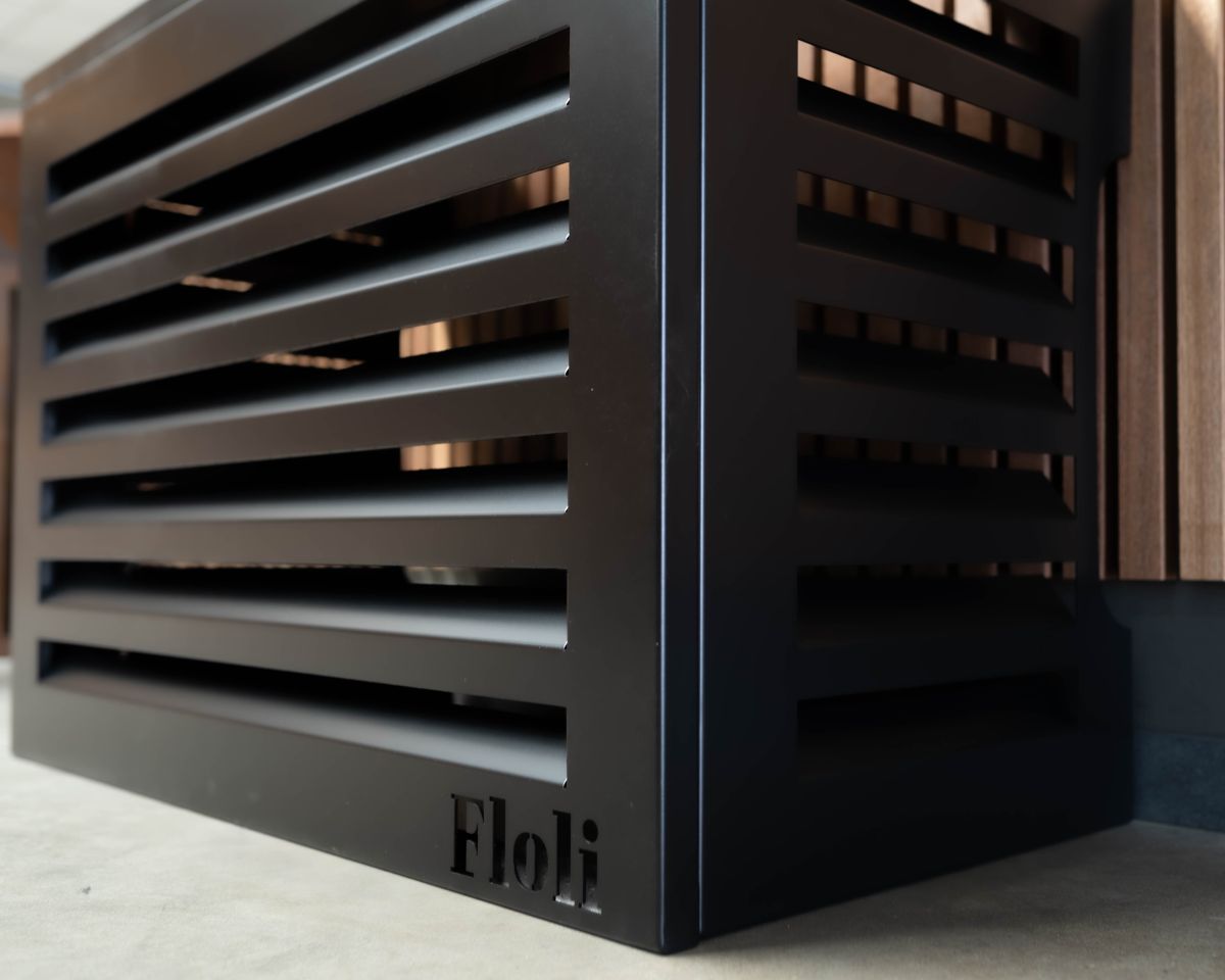 De Floli airco omkasting is vervaardigd van een duurzame hoogwaardige kwaliteit aluminium en is geheel onderhoudsvrij. De cover is bestand tegen alle weersomstandigheden en roest niet. De sierlijke elegante “Louvre” uitstraling rondom de buitenzijde zorgt ervoor dat de buitenunit netjes wordt weggewerkt zonder dat deze de werking van de airco belemmerd.