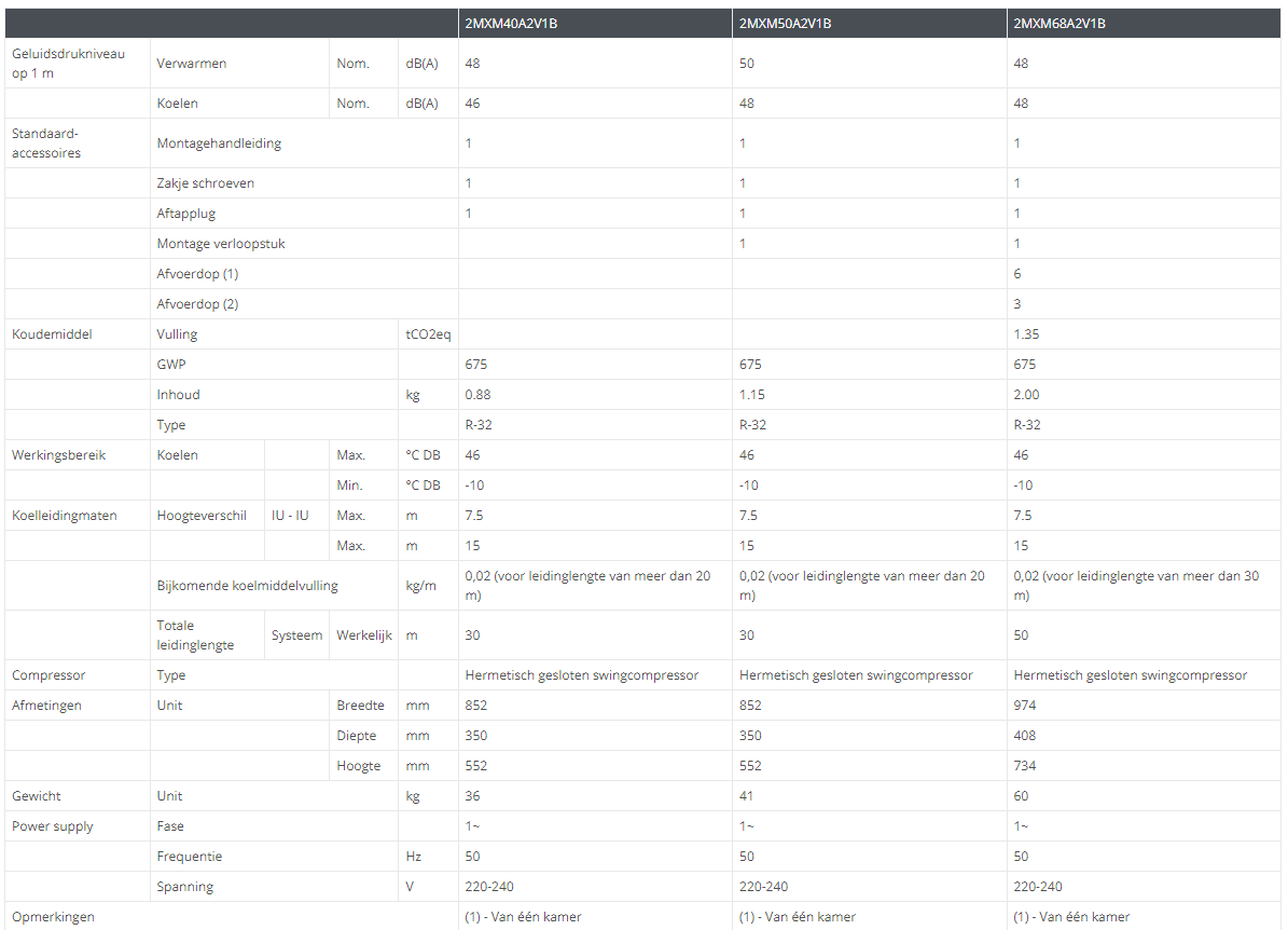 • Maximaal 2 binnendelen kunnen op 1 multi-buitendeel worden aangesloten; alle binnendelen blijven afzonderlijk regelbaar en hoeven niet tegelijkertijd of in dezelfde ruimte te worden geïnstalleerd