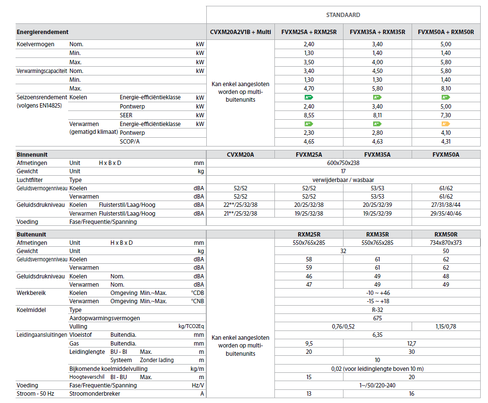 - Combineerbaar met multi-buitenunits met 2 en 3 poorten (uitgezonderd 2-3MXM68)