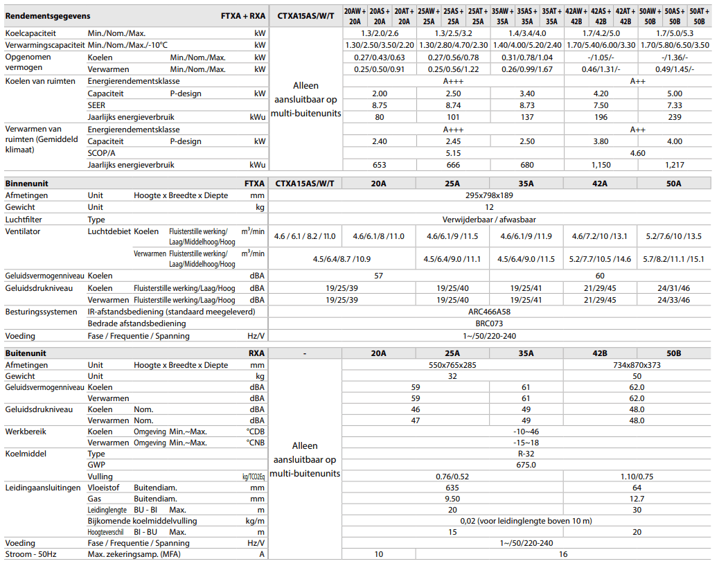 - Seizoensrendement tot A+++ in koel- en verwarmingsmodus, dankzij de geavanceerde technologie en ingebouwde intelligentie.