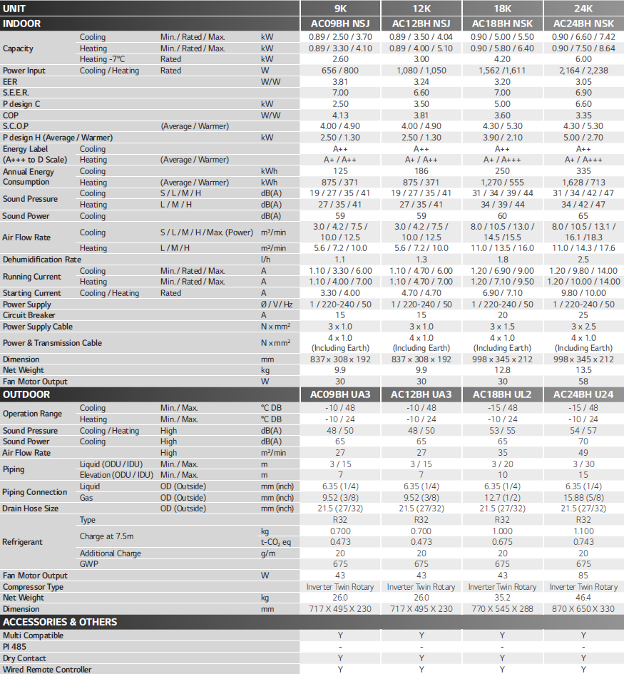 - Seizoensrendement tot A+++ in koel- en verwarmingsmodus, dankzij de geavanceerde technologie en ingebouwde intelligentie.