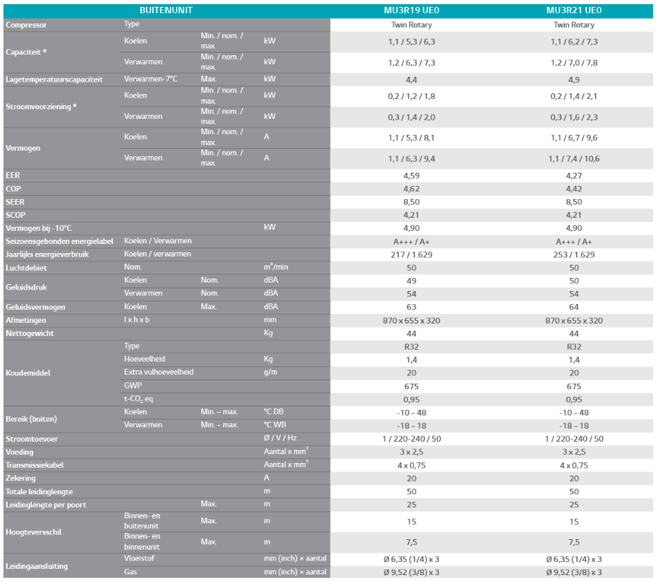 Multi Split Buitenunit MU3R19 – 5,3kW