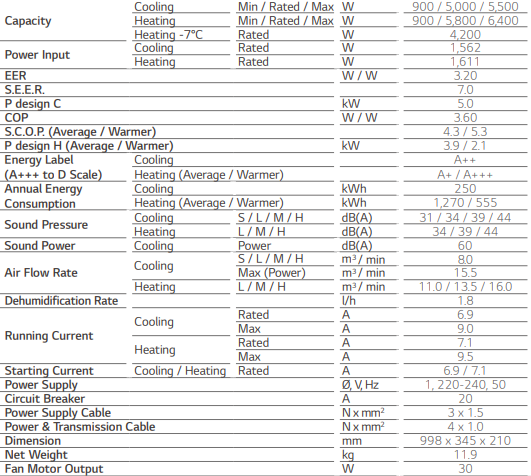 LG airconditioners zijn strak en modern vormgegeven. Het design is makkelijk schoon te maken en het grote verborgen display zorgt ervoor dat het energy display goed zichtbaar is.