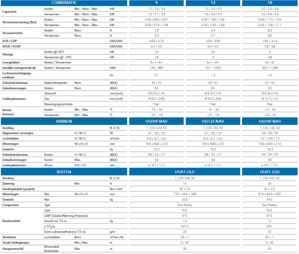 Buitendeel LG UUA1 R32 9-18000k + LG UQ12F Binnendeel inclusief afstandsbediening. - Dit model is voorzien van een plasma luchtreinigingsfilter.